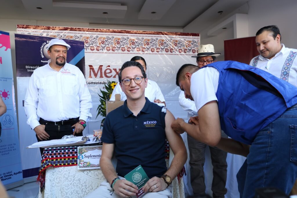 Hoy Con la aplicación de vacunas a Gloria Elisa, de un año de edad; Alexander Otoniel, de un año y siete meses; y al cónsul de México en Tecún Umán, José Luis Alvarado, en las instalaciones del Consulado de México en la Municipalidad de Ayutla, Tecún Umán, la Secretaría de Salud de Chiapas, a través de la Jurisdicción Sanitaria número VII de Tapachula, y el Ministerio de Salud Pública de Guatemala y el Departamento de San Marcos pusieron en marcha la Estrategia Fronteriza México–Guatemala para la Prevención del Sarampión, un hecho histórico en materia de cooperación binacional para hacer frente a esta enfermedad reemergente.