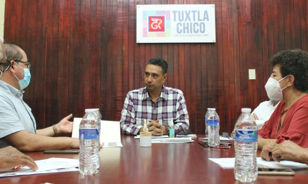 Tuxtla Chico, Chiapas a 23 de noviembre de 2021. Como ha sido el inicio de su administración de mantener un diálogo positivo y de confianza con todos los grupos sociales y religiosos del municipio, el presidente de Tuxtla Chico, Julio Enrique Gamboa Altúzar sostuvo un encuentro de trabajo con el sacerdote de la parroquia de Santa María de Candelaria, Víctor Manuel Contreras Juárez, en donde presentaron el proyecto de embellecimiento del templo.