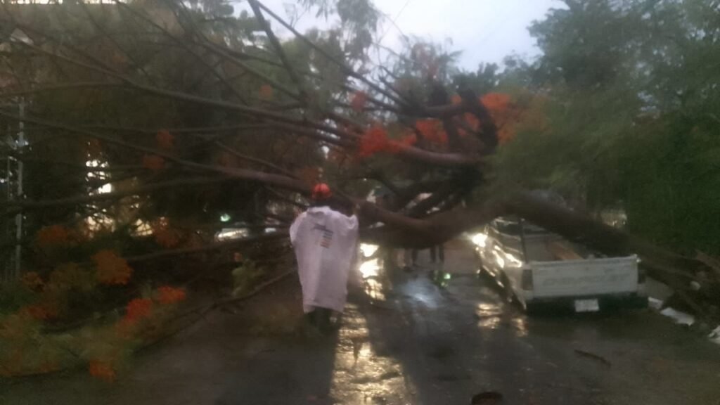 Añadió que se reportó el derribo de siete árboles en las colonias Montecristo, Laguitos y en el fraccionamiento Moctezuma, además de la caída de un techo en la colonia Municipal los Presidentes, de un poste, una barda y un anuncio espectacular.