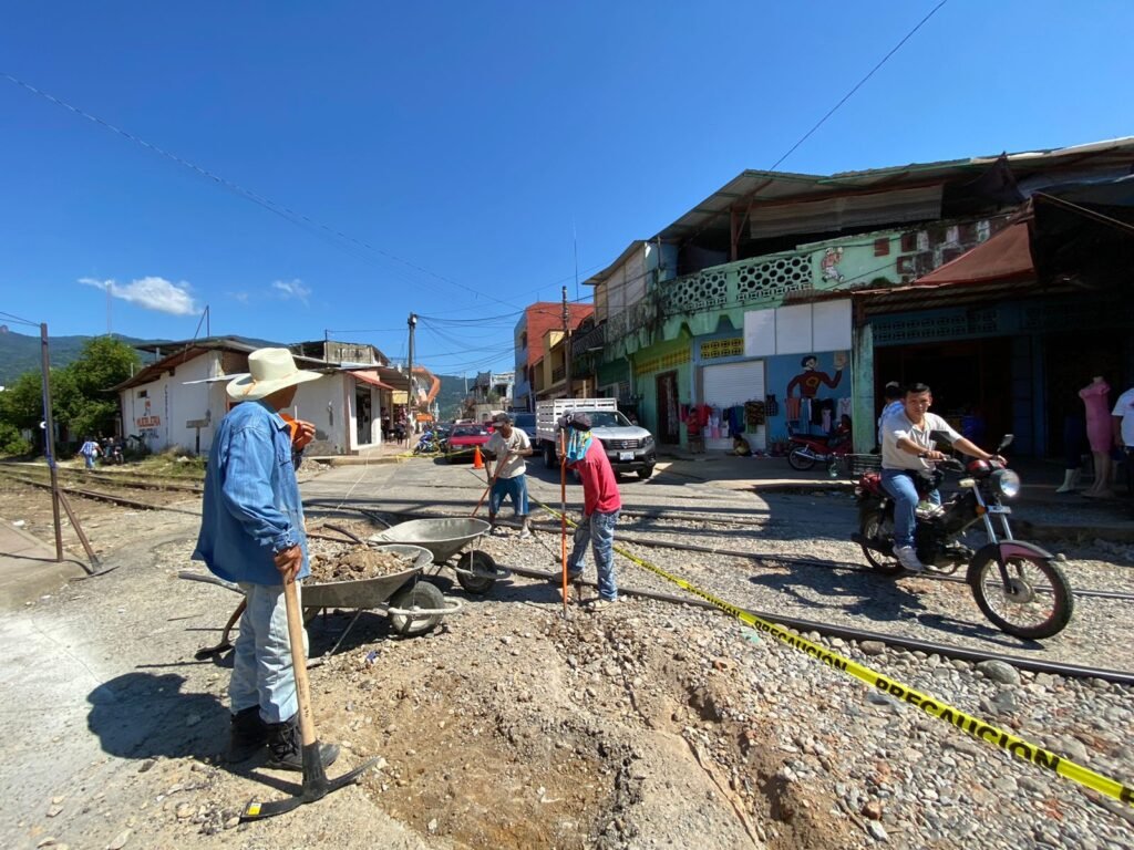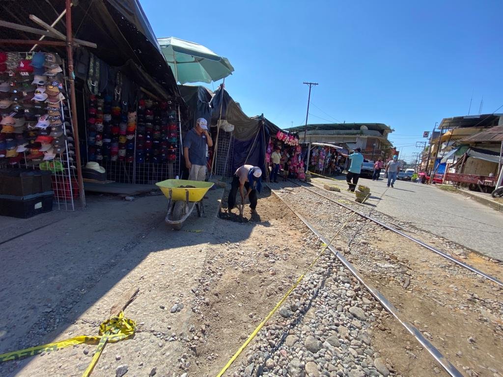 A la altura de la Av. Juárez Norte y del lado dea Av. Central Norte; por las vías del Ferrocarril; es donde estos trabajos se están realizando; garantizando con ello la seguridad del peatón así como de los medios de transporte y usuarios del mismo.