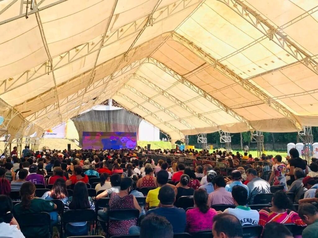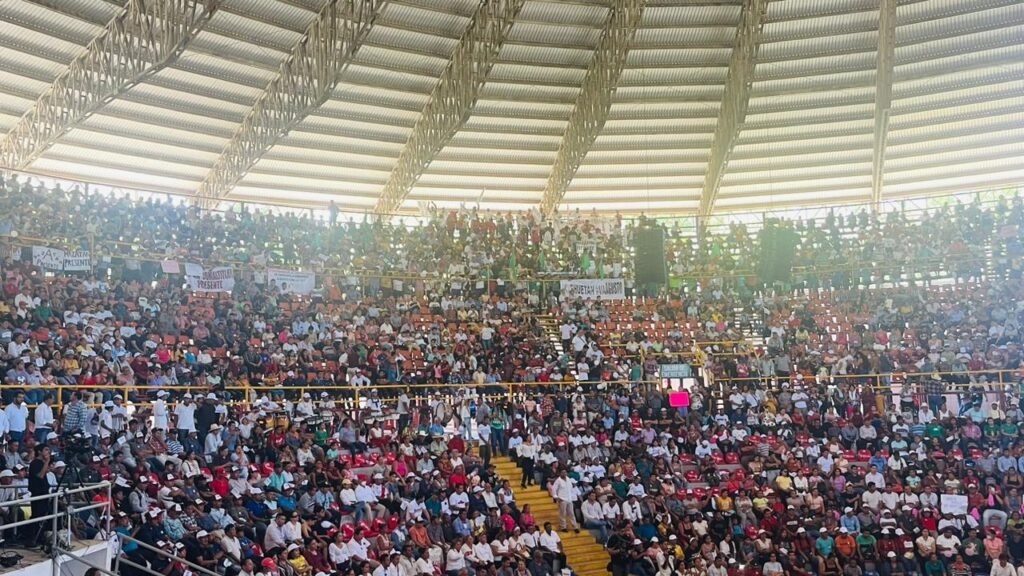 El palenque presentó un lleno total, asistieron más de 15 mil personas, mismas que se ubicaron tanto al interior del palenque de la Feria Mesoamericana como en la carpa externa, donde se proyectó el evento; además se podían apreciar personas sobre los árboles y en la periferia, en donde se podía escuchar el discurso.