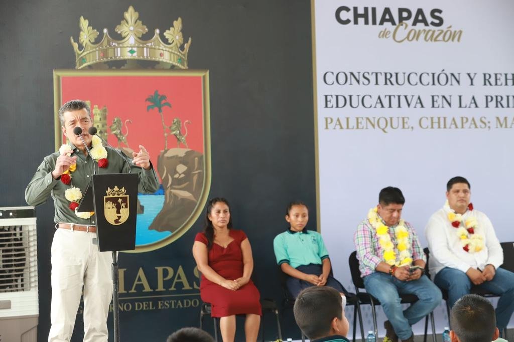 En el municipio de Palenque, el gobernador Rutilio Escandón inauguró la rehabilitación integral y construcción de infraestructura educativa en la Escuela Primaria Lázaro Cárdenas del Río, donde destacó que, con el respaldo del presidente de la República, Andrés Manuel López Obrador, en Chiapas se atienden las necesidades prioritarias y se avanza en el combate al rezago que durante muchos años prevaleció en el sector educativo.