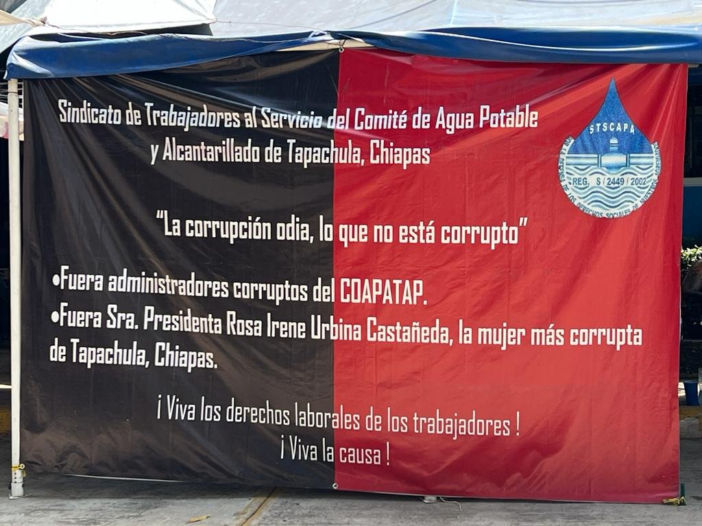 Tapachula, Chiapas. Julio 31.— La administración de Rosi Urbina tiene ahogado al Comité de Agua Potable y Alcantarillado de Tapachula (Coapatap) por diversas irregularidades en el manejo de los recursos públicos, lo que provocó la huelga de trabajadores que sumó este lunes 11 días.