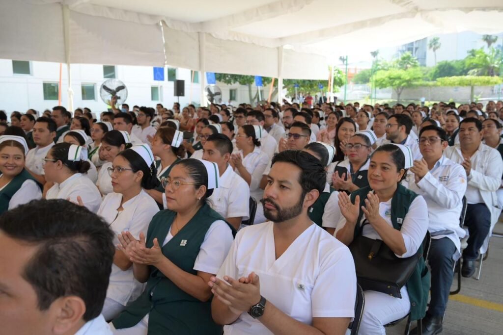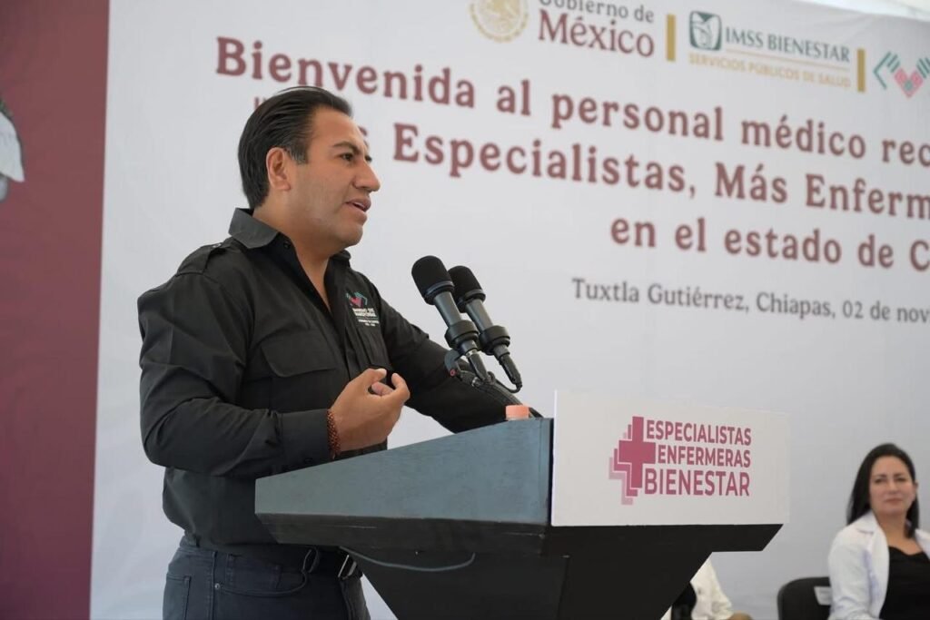 Por su parte, Alejandro Svarch Pérez informó que a nivel nacional se contrataron más de mil 300 especialistas y 2 mil 200 enfermeras y enfermeros, de los cuales se incorporan en Chiapas 145 enfermeras y enfermeros y 97 médicas y médicos especializados en áreas como anestesiología, cirugía general, medicina interna, geriatría, neurocirugía, pediatría, angiología y cirugía vascular.
