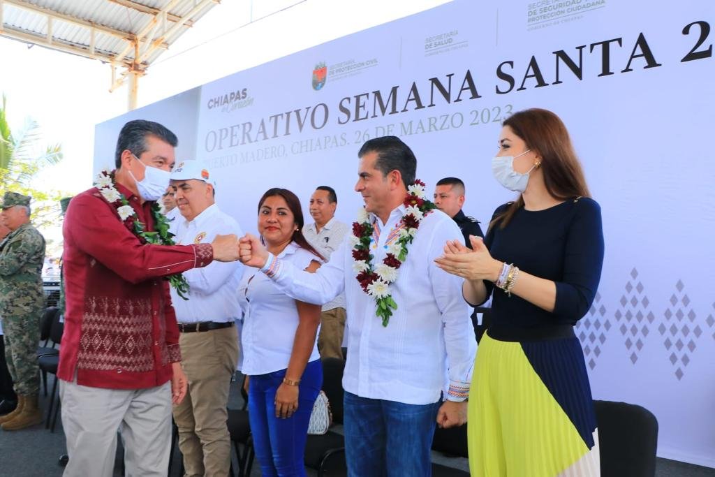 Desde el Malecón de Puerto Madero, en el municipio de Tapachula, el gobernador Rutilio Escandón Cadenas dio el banderazo de salida del Operativo Semana Santa 2023, a fin de establecer mecanismos y acciones preventivas durante la temporada vacacional, del 31 de marzo al 17 de abril, en los distintos centros turísticos que año con año son visitados por turistas regionales, nacionales e internacionales.