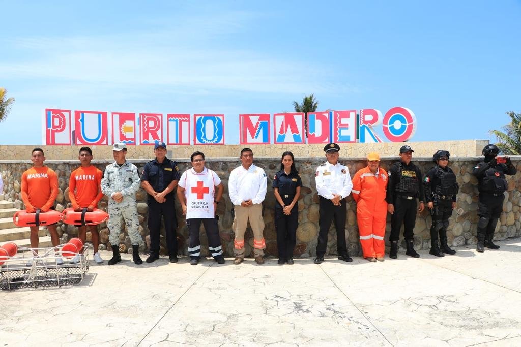 Asimismo, los representantes de la Guardia Nacional, Jorge Ortiz Canales, de la Policía Estatal Preventiva, Julio César Jiménez Hernández; de la Fiscalía de Distrito Fronterizo Costa, Ángeles Daniel Zúñiga Ballinas; la agente municipal de Puerto Madero, Emilia Isabel Ruiz Cabrera; representantes de los centros ecoturísticos del estado y de los Comités Comunitarios de Protección Civil, así como presidentas y presidentes municipales.