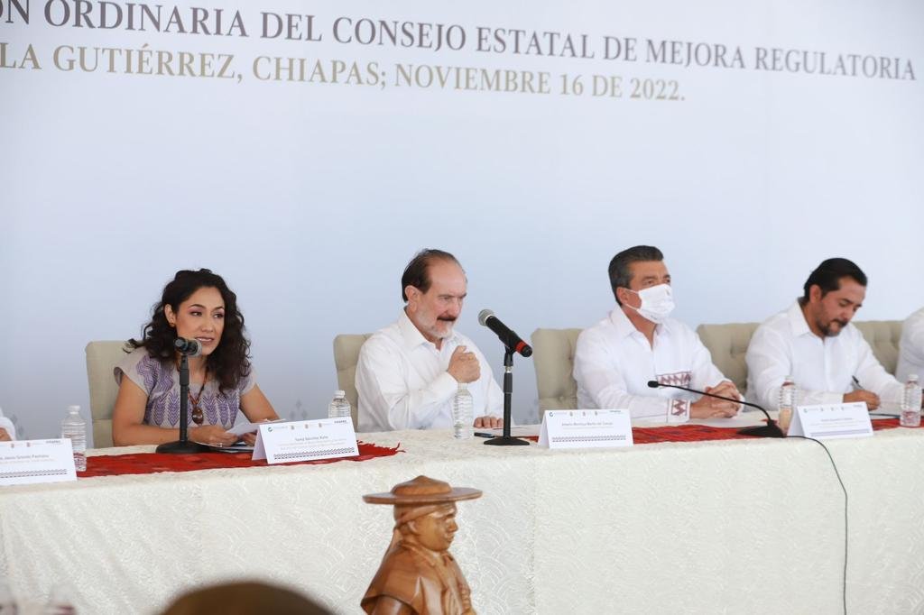 Finalmente, el secretario de Economía y del Trabajo, Carlos Alberto Salazar Estrada, señaló que en Chiapas se fortalece la mejora regulatoria al ser uno de los elementos que incentiva la economía, por ello, a través de acciones y programas, se busca dar respuesta inmediata, eficaz y oportuna a las personas que se acercan a las instituciones públicas a realizar trámites administrativos relacionados a las actividades comerciales y productivas.