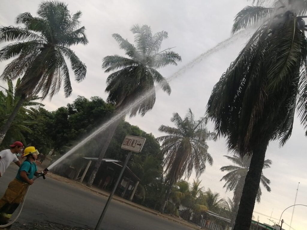 Tapachula, Chiapas.- Dos emergencias relacionadas con la quema de palmeras sobre la carretera al antiguo aeropuerto y un enjambre de abejas africanas que ponía en riesgo a los vecinos del fraccionamiento Valle Verde, fueron atendidas por personal de Protección Civil Municipal de Tapachula.