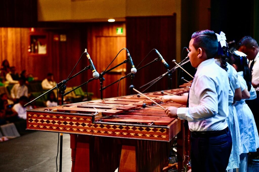 El Teatro de la Ciudad “Amparo Montes” se convirtió en escenario de fiesta y tradición con la participación de distintos grupos marimbísticos integrados por alumnos de instituciones educativas del nivel básico, quienes deleitaron al público con su destreza interpretativa y entusiasmo por la música chiapaneca.