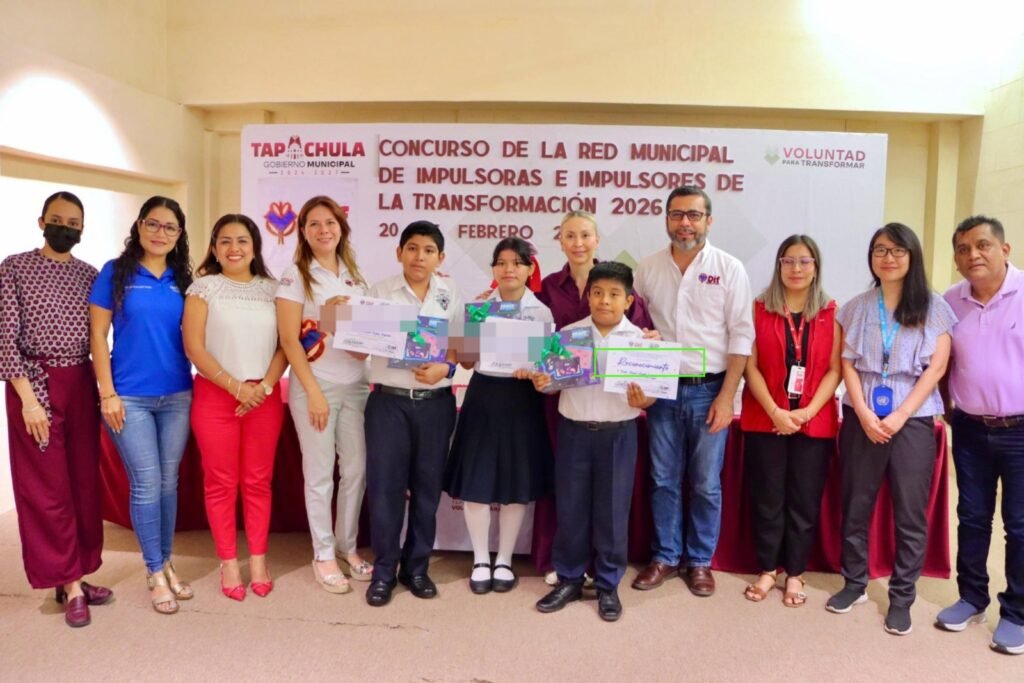 Con la finalidad de promover la expresión y participación activa de la niñez y adolescencia en la defensa de sus derechos, el Sistema DIF Tapachula, dependiente del H. Ayuntamiento de Tapachula, realizó con éxito el Concurso de la Red Municipal de Impulsoras e Impulsores de la Transformación 2026, espacio que fortalece el conocimiento y la promoción de los derechos de niñas, niños y adolescentes.