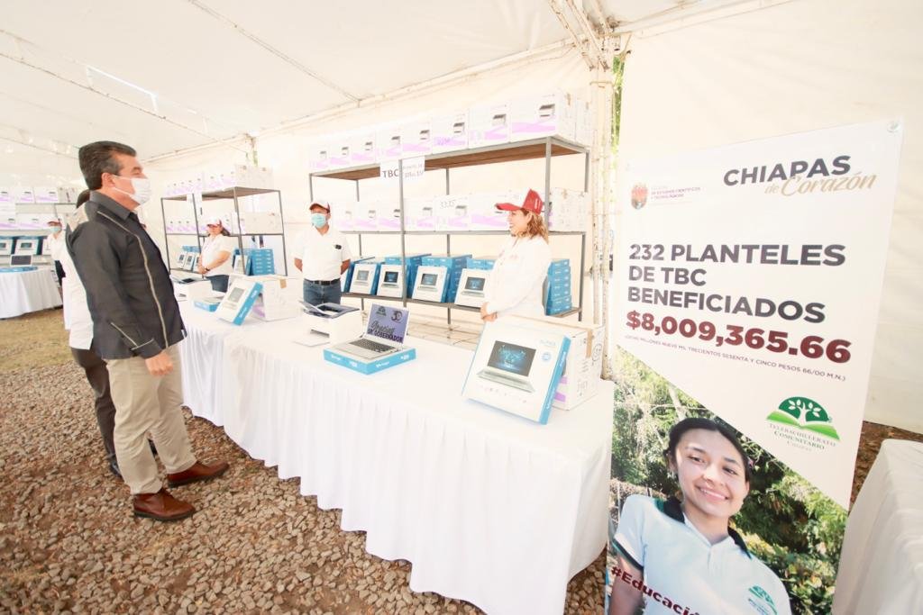 En el arranque de las acciones de rehabilitación de espacios y entrega de equipo informático y material bibliográfico a 232 planteles de Telebachillerato Comunitario (TBC), el gobernador Rutilio Escandón Cadenas destacó que se invierte en este rubro con el objetivo de garantizar el derecho a una educación de calidad a la niñez y juventud, y otorgar a las y los docentes herramientas necesarias para realizar sus actividades en óptimas condiciones.