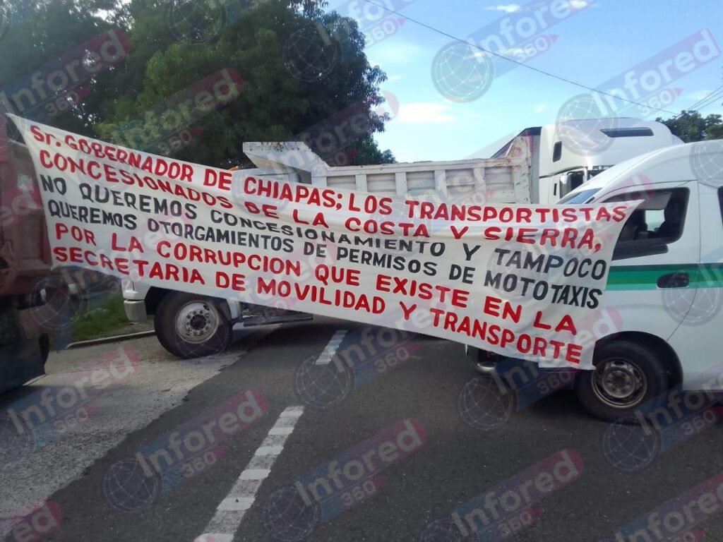 Los integrantes de la Alianza del Autotransporte de Chiapas interrumpieron las vías que comunican a los municipios de la frontera y la costa de Chiapas.