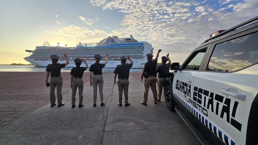 Los cerca de 2 mil 904 pasajeros y mil 130 elementos de la tripulación, desde su arribo a la terminal de cruceros de Puerto Chiapas, elementos de la Guardia Estatal de Turismo, implementaron dispositivo de seguridad y acompañamiento de los autobuses que trasladaron a los visitantes.