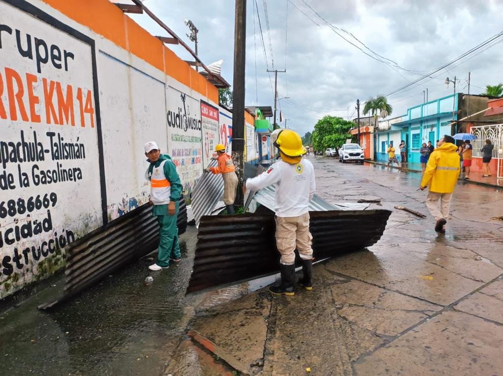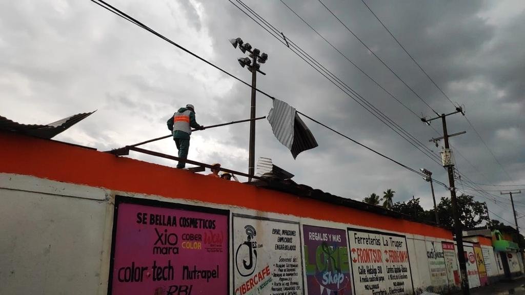 La instrucción del presidente Municipal Julio Enrique Gamboa Altúzar es la de dar atención inmediata a la población en esta temporada de huracanes y ciclones, por lo que a través de la Dirección de Protección Civil Municipal de Tuxtla Chico se acudió al lugar para realizar maniobras de liberación y levantamiento de láminas, estructura y cableado. Así mismo se realizó un trabajo de liberación de escombros en el boulevard 5 de febrero en donde colapsó un techado de madera debido a los fuertes vientos, en las dos situaciones ninguna persona resultó herida.