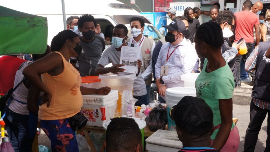 Rojas Cárdenas, mencionó que se visitó cada uno de los puestos semifijos de los migrantes para informarles que serán reubicados a un lugar seguro y con las condiciones necesarias para realizar sus actividades comerciales, en tanto esperan el documento que les permita continuar el viaje hacia otras regiones del país.