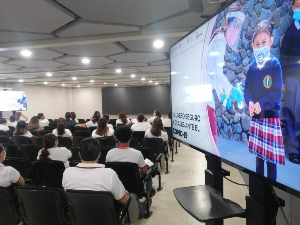 Tuxtla Gutiérrez, Chiapas; enero de 2022.- Ante el gradual regreso a clases de manera presencial en los diferentes niveles educativos, el secretario de Salud de Chiapas, doctor Pepe Cruz, señaló que con la finalidad de garantizar las mejores condiciones para el retorno de niñas, niños y adolescentes a las aulas, se capacita a personal directivo, docente y administrativo de escuelas públicas y privadas del estado en cuanto a las medidas sanitarias a seguir para prevenir contagios de COVID-19.