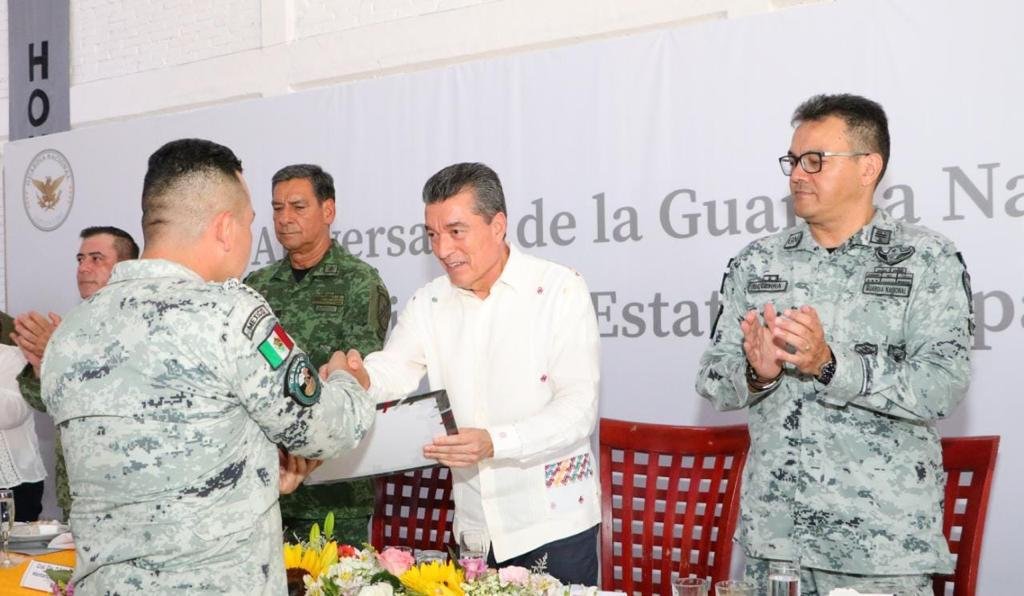 Al asistir a la conmemoración del Cuarto Aniversario de la Guardia Nacional, que se llevó a cabo en el Cuartel de Chiapa de Corzo, el gobernador Rutilio Escandón Cadenas reconoció la visión del presidente Andrés Manuel López Obrador de consolidar esta institución del Estado mexicano, que con su trabajo solidario y comprometido ha contribuido a la protección de la vida, los bienes y la estabilidad social, así como al respeto de los derechos humanos y las libertades del pueblo de Chiapas y de México.