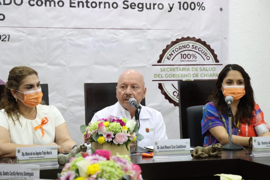 Por su parte, la presidenta de la Mesa Directiva del Congreso del Estado, María de los Ángeles Trejo Huerta, reiteró el compromiso de miembros y trabajadores del Poder Legislativo en materia de prevención de COVID-19 y otras enfermedades, para que el estado de Chiapas sea un entorno seguro y saludable.