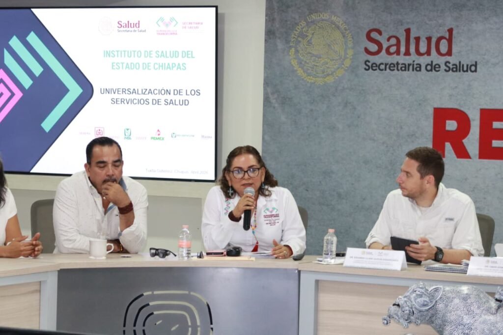 Tuxtla Gutiérrez, Chiapas; 16 de abril de 2026.- El gobierno de Eduardo Ramírez le apuesta a que la calidad de la salud sea para todas y todos, sin excepción, por eso la universalización de los servicios avanza en Chiapas con la finalidad de reducir la desigualdad en el acceso a la atención médica, aseguró el secretario de Salud, Omar Gómez Cruz, durante una reunión de trabajo con el subsecretario de Integración Sectorial y Coordinación de Servicios de Atención Médica de la Secretaría de Salud federal, Eduardo Clark García Dobarganes.