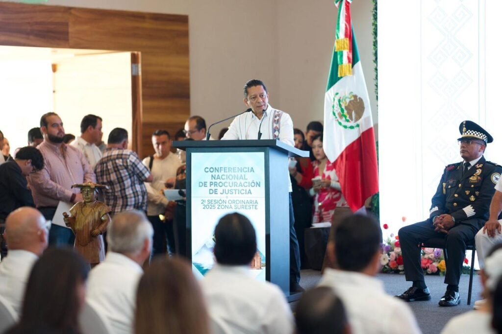 El gobernador Eduardo Ramírez Aguilar; el fiscal especializado de Control Regional de la Fiscalía General de la República (FGR), Germán Castillo Banuet, en representación del fiscal general de la República, Alejandro Gertz Manero; y el fiscal general del Estado de Chiapas, Jorge Luis Llaven Abarca; encabezaron la inauguración de la Conferencia Nacional de Procuración de Justicia, 2ª Sesión Ordinaria 2025 Zona Sureste, con la presencia de fiscales generales de la región.
