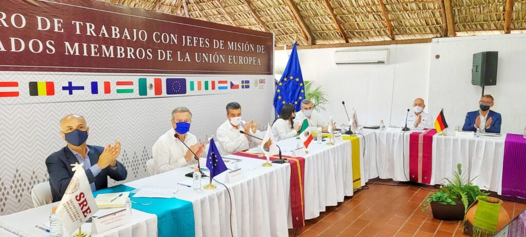 •El gobernador y el embajador Gautier Mignout encabezaron el Encuentro de Trabajo con Jefes de Misión de los Estados Miembros de la UE, luego de varios años de no realizar un evento de este tipo en México