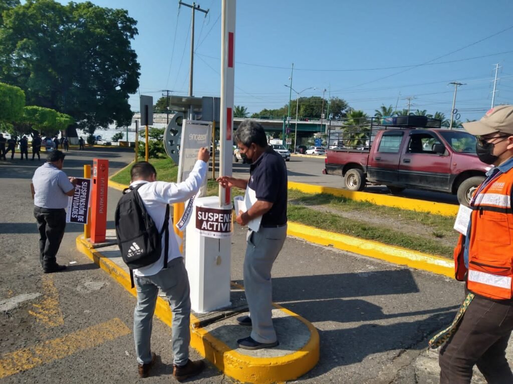 Tapachula, Chiapas.- En cumplimiento a una sentencia del juicio de lo contencioso administrativo, mediante el expediente 10/22, el Ayuntamiento de Tapachula, procedió a la clausura de los sistemas de cobro del estacionamiento de la empresa Dunza, ubicado en el centro comercial de Sam´s Club, en la 4ª. avenida Sur y Libramiento Sur.