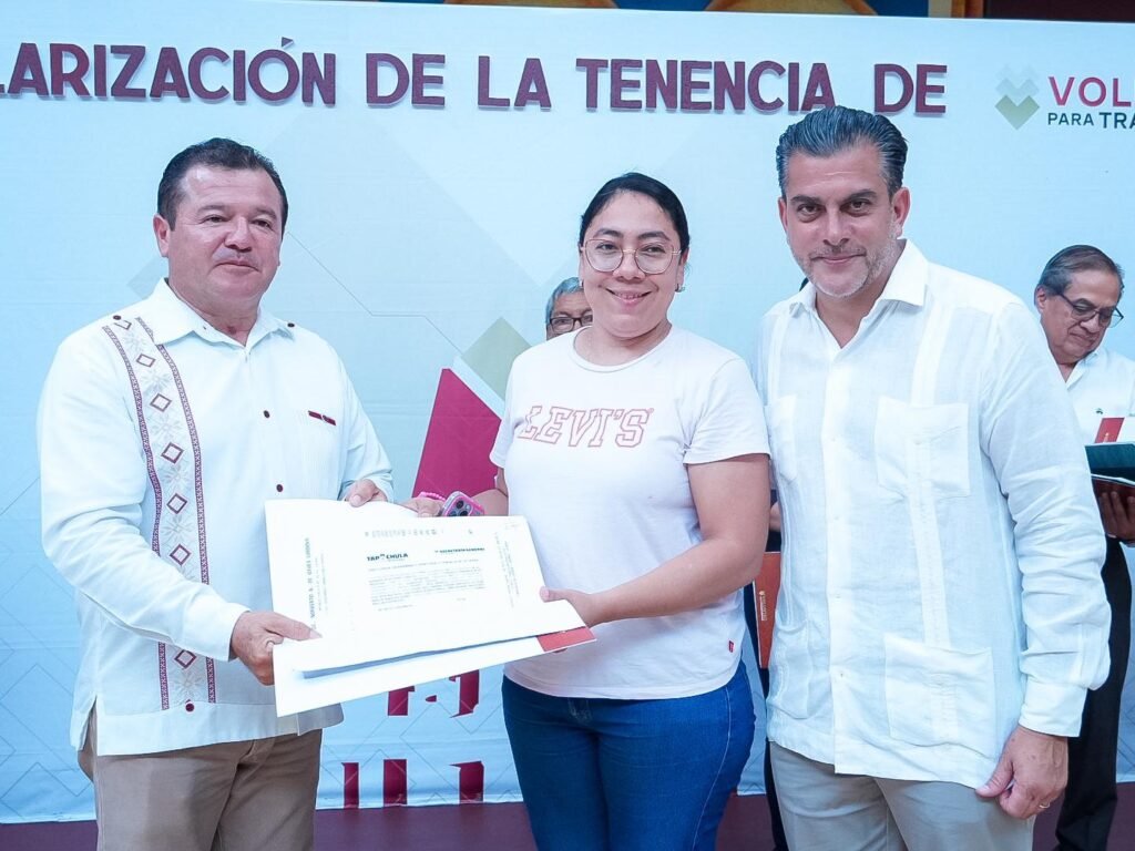 Con la firme convicción de otorgar bienestar patrimonial a las familias tapachultecas, el presidente municipal, Yamil Melgar, entregó un total de 50 escrituras públicas a igual número de familias, como parte del Programa de Regularización de la Tenencia de la Tierra.