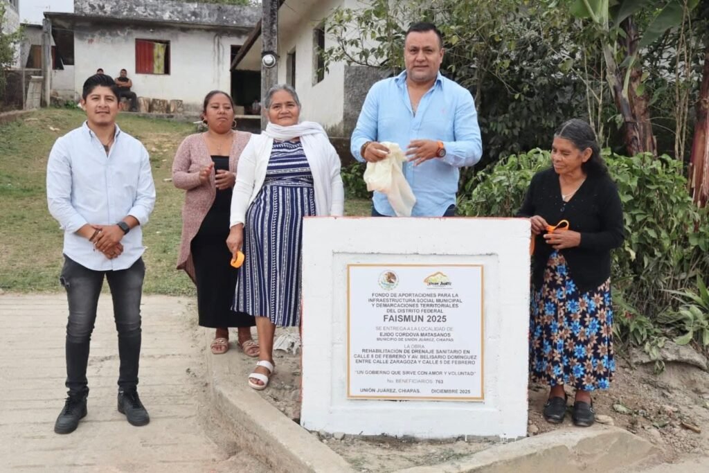 Fabián Barrios de León, alcalde de Unión Juárez inauguró la obra de drenaje sanitario en la comunidad de Córdoba, una acción prioritaria que fortalece la salud pública, la higiene y el bienestar de las familias, principalmente de niñas, niños, así como de los jóvenes que asisten a la escuela secundaria de la localidad.