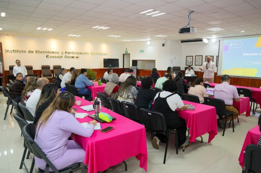 El Instituto de Elecciones y Participación Ciudadana (IEPC) de Chiapas, organizó el curso-taller de capacitación: “Reforma al Poder Judicial y las Elecciones Judiciales a nivel federal y local”, dirigido a titulares y personal de todas las áreas ejecutivas, unidades técnicas, y Contraloría General de este organismo. Dicho espacio, fue presentado por Arturo Espinosa Silis, especialista en derecho electoral y constitucional; y Víctor Díaz de León, consultor en materia política y electoral.