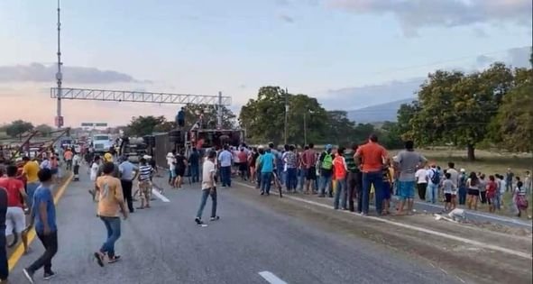 El tráiler que remolcaba una caja de las conocidas panzonas, trasladaba entre 30 a 35 becerreros, cuando el conductor del tráiler a tomar una curva, a la altura de la comunidad El Caballito, en el tramo Tapachula-Tonalá, perdió el control y volcó.