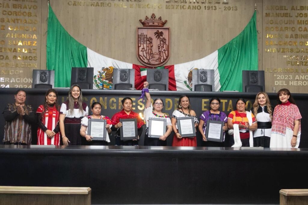 Ante la titular de la Secretaría General de Gobierno y Mediación, Patricia del Carmen Conde Ruiz y del presidente de la Junta de Coordinación Política, Mario Guillén Guillén, se entregaron los galardones a mujeres que han destacado en su labor como productoras, artesanas, promotoras culturales, en las siguientes categorías :