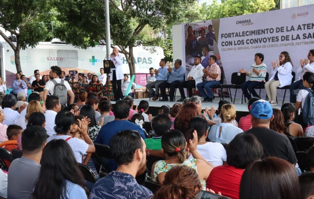 Chiapa de Corzo, Chiapas; 06 de septiembre de 2023.- En Chiapas, el Gobierno de la Cuarta Transformación ha logrado el objetivo de consolidar un modelo de salud centrado en la gente, que brinda atención digna y de calidad a la población que más lo necesita, aseguró el secretario de Salud del estado, doctor Pepe Cruz, al visitar la colonia El Refugio del municipio de Chiapa de Corzo, donde constató la cobertura de servicios que otorgaron los Convoyes de la Salud.