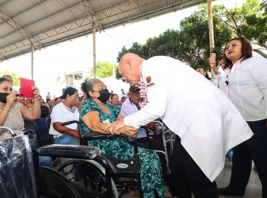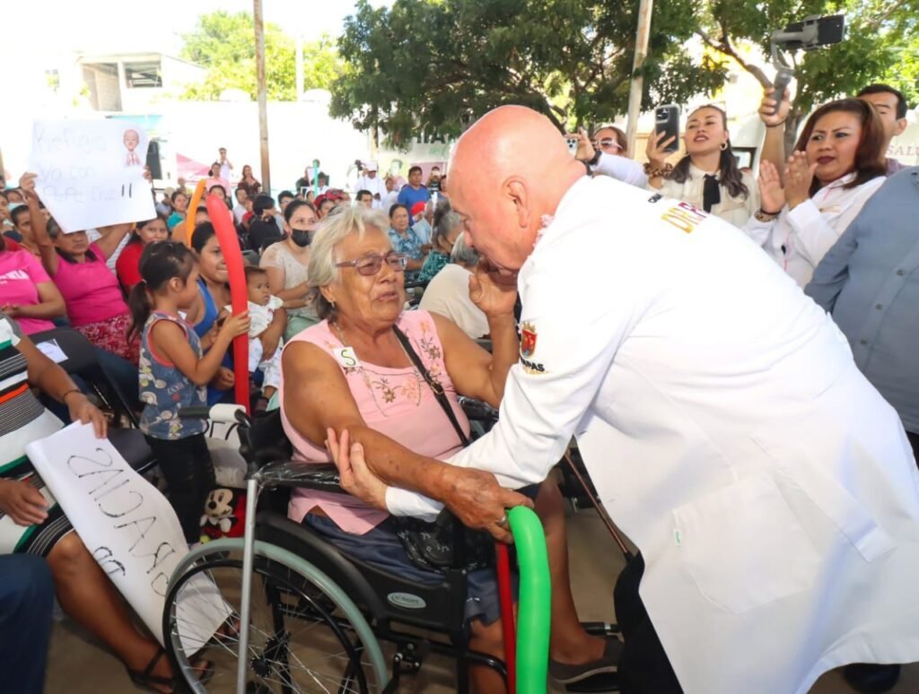 En el marco de este evento, el secretario de Salud estatal hizo entrega de ayudas técnicas, como sillas de ruedas, andaderas y bastones, a personas con problemas de movilidad y/o con alguna discapacidad que fueron detectadas como resultado de las visitas casa a casa que realizan las brigadas de salud.