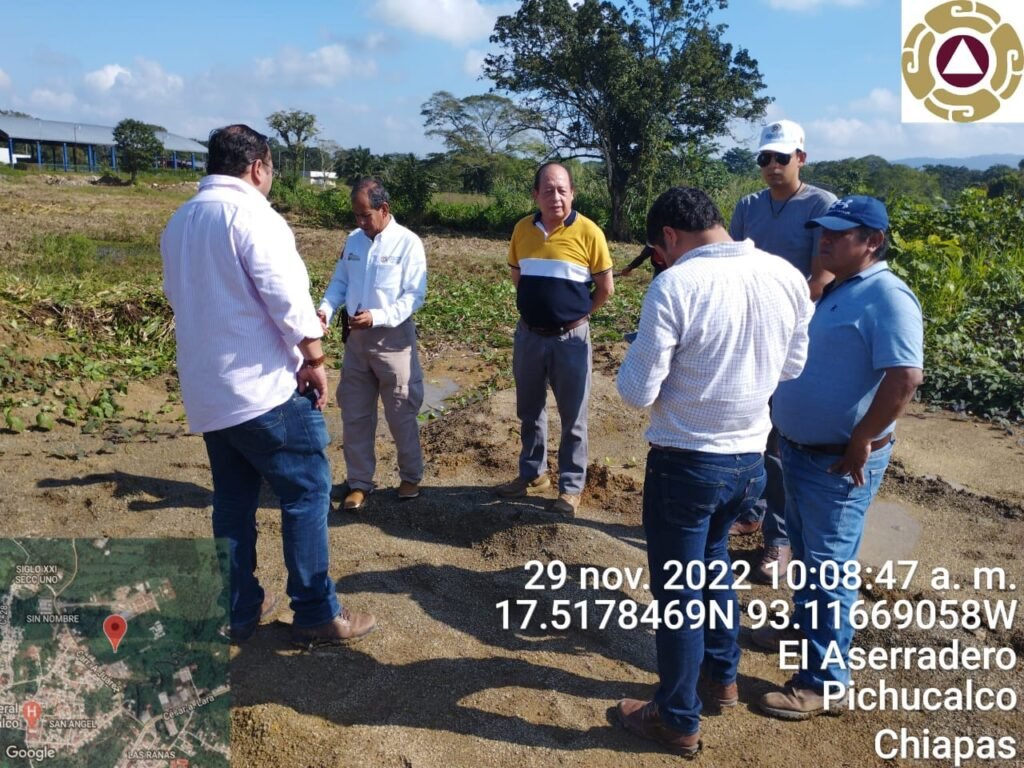 Participan en las actividades: la Secretaría Protección Civil, Secretaría General de Gobierno, Promotora de Vivienda Chiapas (Provich), y autoridades municipales de Pichucalco, entre otros.
