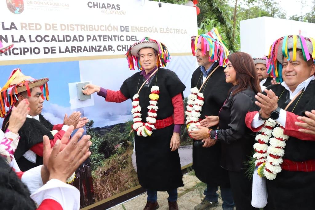 Atendiendo el compromiso de ampliar la cobertura de los servicios básicos de energía eléctrica en las comunidades de Chiapas, a fin de mejorar la calidad de vida de los habitantes, combatir el rezago social y elevar los niveles de calidad en materia de economía, salud, educación y comunicación, el gobernador Rutilio Escandón Cadenas inauguró la construcción de la Red de Distribución de Energía Eléctrica de la localidad Patentic, del municipio de Larráinzar.