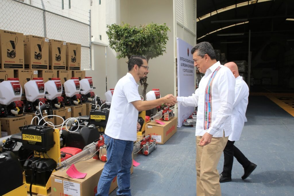 El secretario de Salud, José Manuel Cruz Castellanos, dio a conocer que con la entrega de equipamiento, insumos y vehículos, se logra preparar y reforzar las acciones de prevención del dengue en los distritos sanitarios del estado, lo que demuestra, dijo, el empeño del mandatario estatal de cuidar la salud y salvaguardar a la población de la enfermedad causada por el dengue y otras arbovirosis.