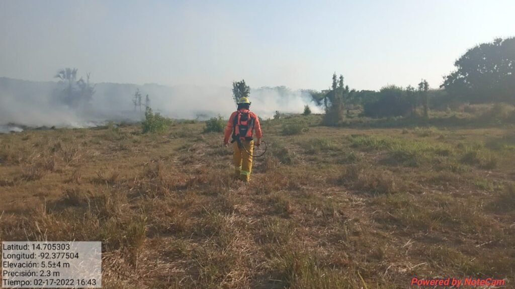 Ante el reporte y en aplicación de los protocolos de protección civil, se procedió a atender el siniestro, con la participación de habitantes de la zona que ayudaron a construir una brecha rompe-fuego.