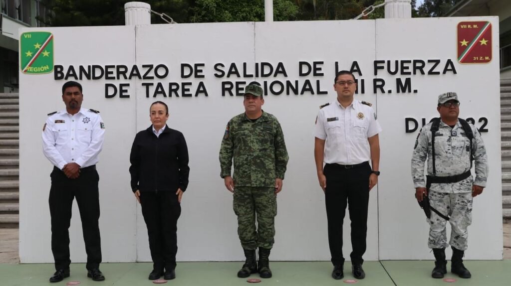 Este domingo 25 de diciembre se dio el banderazo de inicio del Operativo Fuerza de Tarea Regional de la Séptima Región Militar que se implementará en los municipios de Tuxtla Gutiérrez, Ocozocoautla y Berriozábal, con la finalidad de trabajar en coordinación con fuerzas federales, estatales y municipales para garantizar la paz y la seguridad de las familias chiapanecas, de acuerdo con el Plan Estratégico del Gobierno Federal.