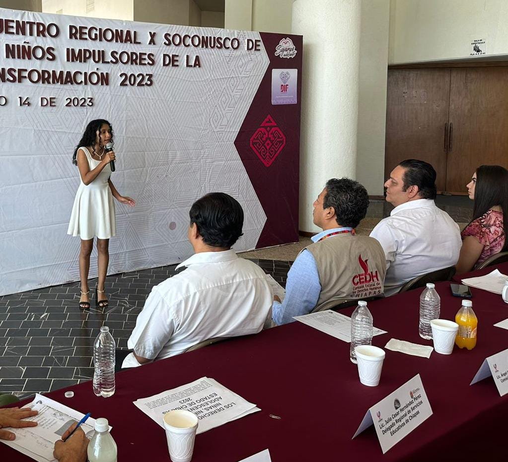 Tuxtla Chico, Chiapas a 15 de marzo. Una destacada participación logró Tuxtla Chico en el Encuentro Regional X Soconusco de la “Red de Impulsores de la Transformación de los Derechos de los Niños, Niñas y Adolescentes”, con la representación de la estudiante Melissa Noemi Rodríguez Chávez.