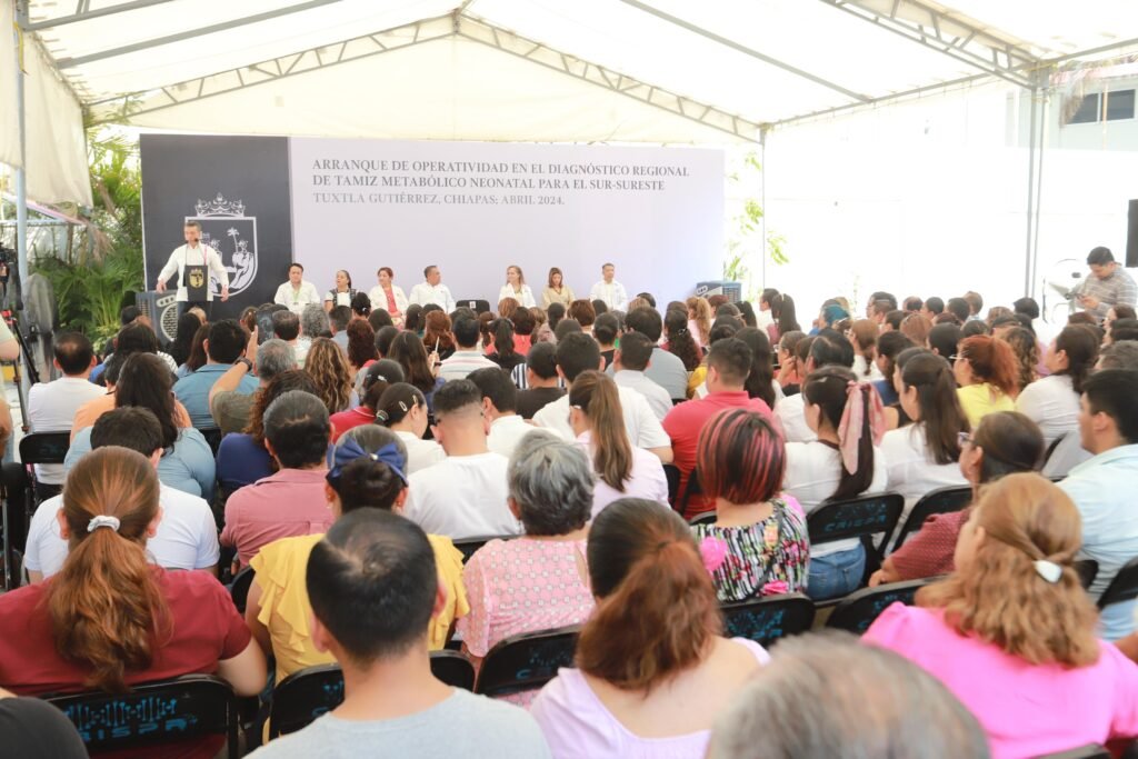 Asimismo, destacó que gracias a su desempeño y operatividad, el LESP, ubicado en la capital del estado, es la sede regional para realizar el Tamiz Metabólico Neonatal no sólo a niñas y niños de Chiapas sino también de los estados de Guerrero, Oaxaca, Tabasco, Quintana Roo, Yucatán, Veracruz y Campeche, como parte de una estrategia pública nacional que permitirá la detección oportuna de padecimientos asociados al hipotiroidismo congénito, fibrosis quística, galactosemia y el diagnóstico de deficiencia de glucosa, entre otros, a recién nacidos.