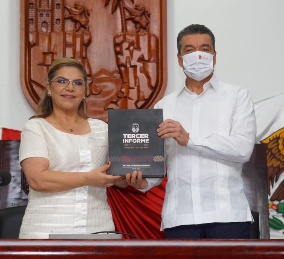 Cabe destacar que en acto protocolario para dar cumplimento al mandato constitucional en la materia, el gobernador del estado Rutilio Escandón Cadenas presentó -en sesión solemne- su Tercer Informe de Gobierno.