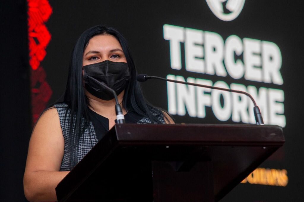 Por el Partido del Trabajo expuso su posicionamiento la diputada Sonia Catalina Álvarez quien manifestó que, desde los inicios de este proceso de transformación en Chiapas, el gobernador constitucional instituyó el Plan Estatal de Desarrollo Chiapas 2019-2024 como un componente de honestidad que ha permitido organizar un sistema de planeación democrático, predominando el interés general de combatir la corrupción y poner en práctica una política de austeridad.