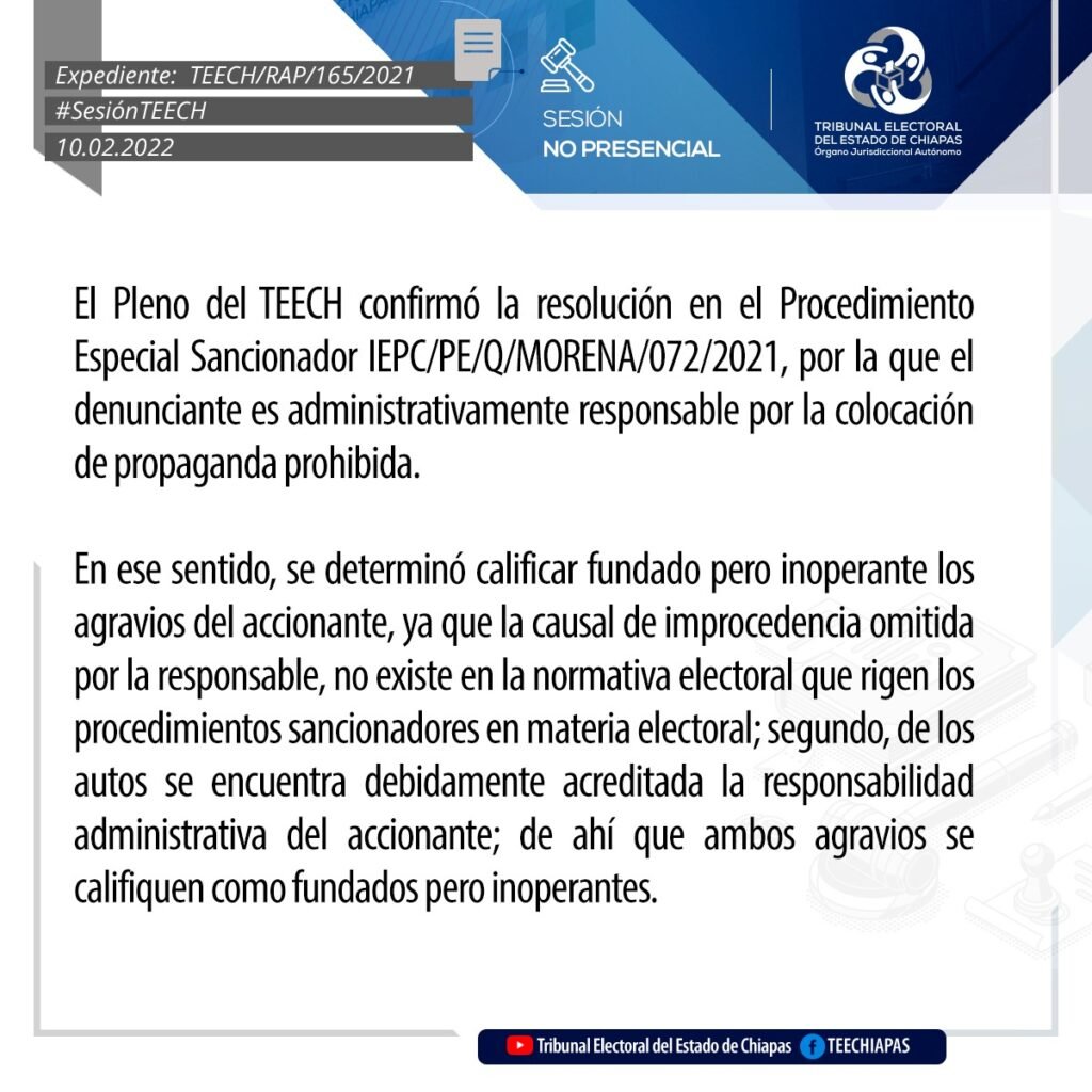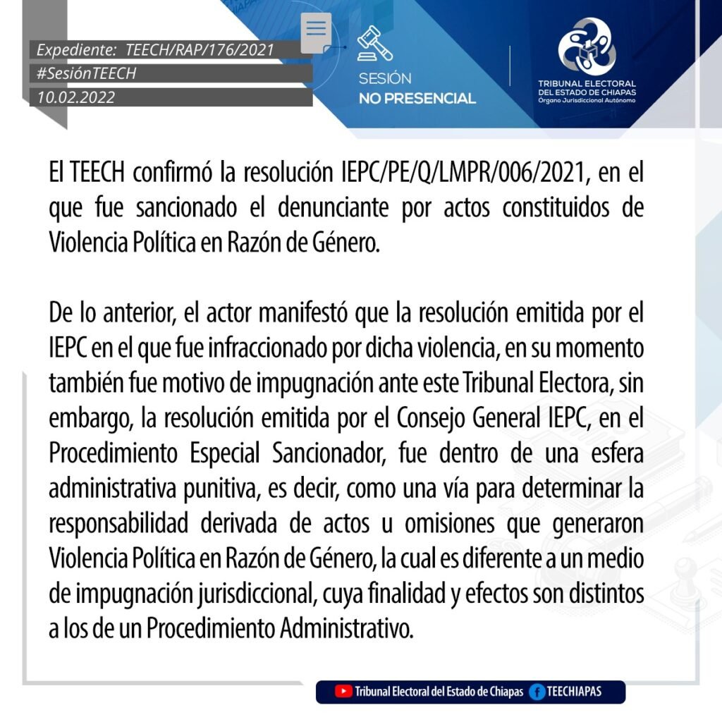 Tuxtla Gutiérrez, Chiapas, 10 de febrero de 2022.- Por unanimidad de votos, el Pleno del Tribunal Electoral del Estado de Chiapas (TEECH) modificó el acuerdo IEPC/CGA-253/2021, emitido por el Consejo General del Instituto de Elecciones y Participación Ciudadana, por el que determinó declarar inconcluso e incompleto el proceso electivo por usos y costumbres de integrantes de Ayuntamiento del Municipio de Oxchuc para el periodo 2022-2024.