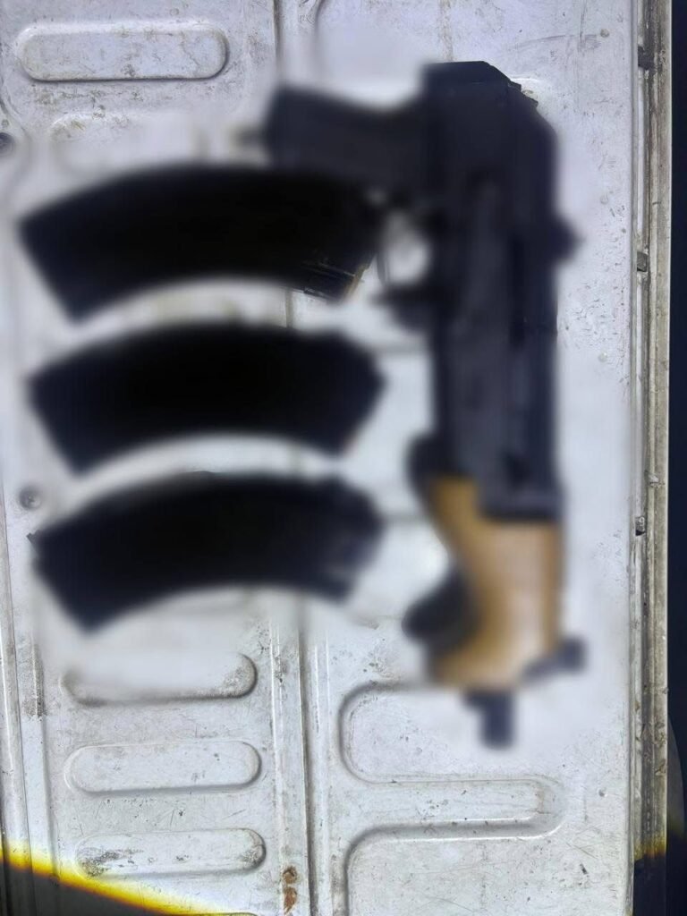 Al revisar la unidad les encontraron medio centenar de dosis de metanfetamina conocida como cristal así como un arma cuerno de chivo calibre 7.62, tres cargadores y 90 cartuchos útiles.