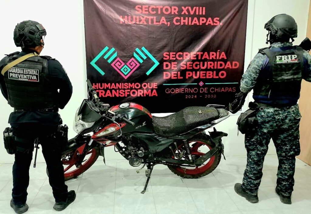 Durante patrullajes de prevención, disuasión del delito y proximidad social sobre el tramo carretero al ejido Efrain A. Gutiérrez a la altura del crucero al barrio la Ceiba del municipio de Huixtla, guardias de la fuerza de seguridad detuvieron a Mauri “N” alias “El Mara” quien al notar la presencia de las autoridades mostró una actitud evasiva e intentó darse a la fuga a bordo de una motocicleta marca Italika sin placas de circulación.