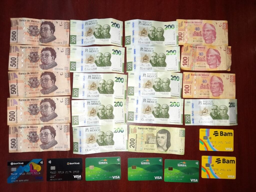 Cabe mencionar que dicha persona llevaba consigo siete tarjetas de diferentes instituciones bancarias y cinco mil pesos en efectivo, por lo que fue puesto a disposición de la autoridad correspondiente, quien determinará su situación jurídica.