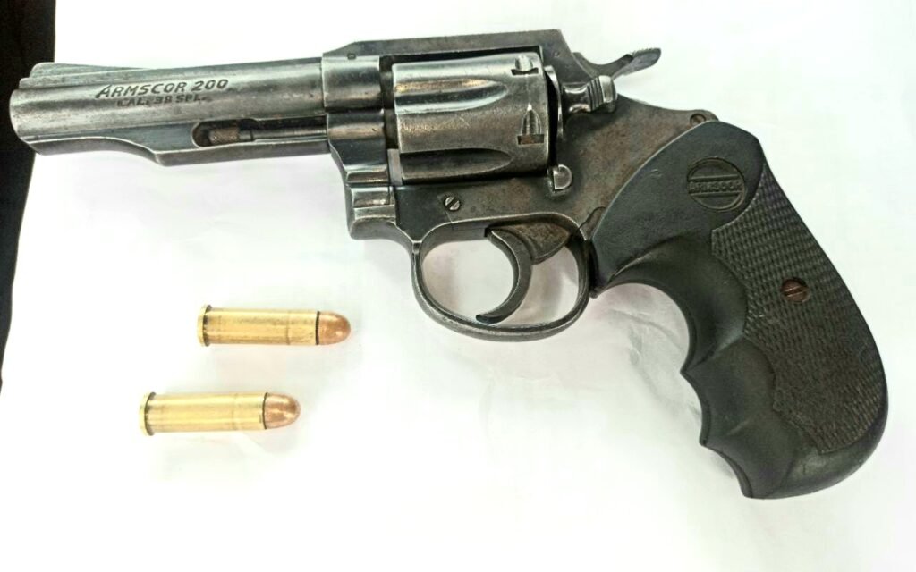 A este le encontraron en su poder un arma de fuego tipo revólver de la marca Armscor200, matrícula A881855, calibre .38 especial, abastecido con dos cartuchos útiles.