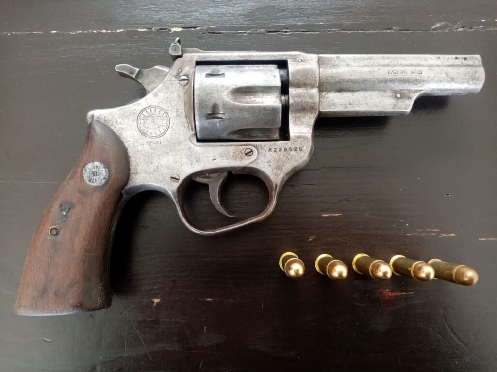 A Noé “N” se le aseguró un arma de fuego tipo revólver calibre 38 milímetros especial con cinco cartuchos útiles y envoltorios de hierba verde al parecer marihuana, en las inmediaciones del acceso principal de la comunidad La Libertad.
