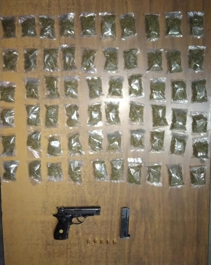 Con la participación de elementos de la Policía Estatal Preventiva y Policía Estatal Fronteriza, se detuvo a Fernanda “N”, Marlon Iván y Melitón “N”, a quienes se les aseguró un arma de fuego 380 milímetros, 5 cartuchos útiles y 60 envoltorios transparentes con al parecer marihuana, así como una motocicleta marca Dinamo.