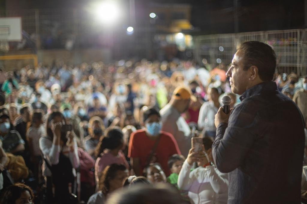 En la plaza principal de la colonia San José Terán, al poniente de Tuxtla Gutiérrez Eduardo Ramírez reconoció el trabajo que tanto a nivel federal realiza el presidente Andrés Manuel López Obrador y en Chiapas el Gobernador Rutilio Escandón Cadenas, ambos velando por quienes menos tienen.